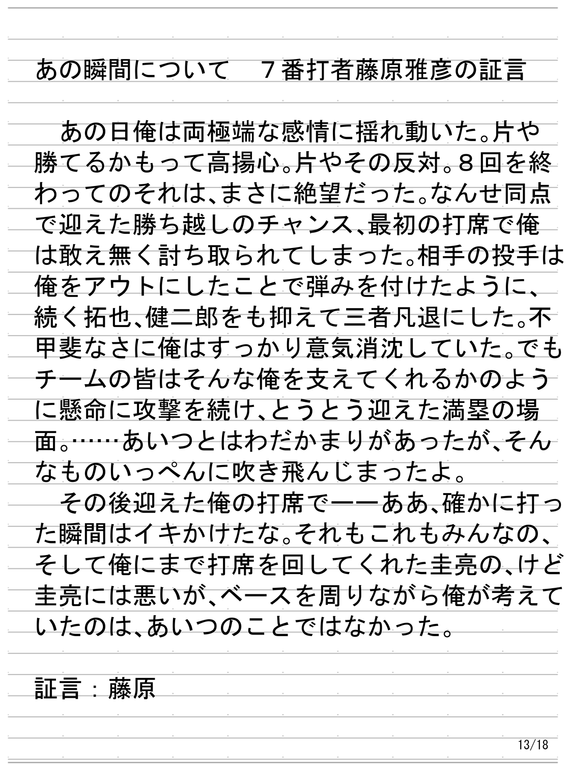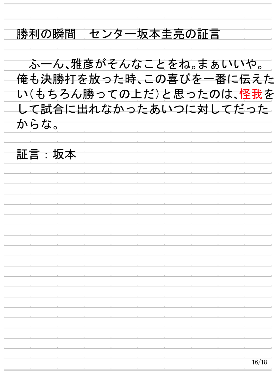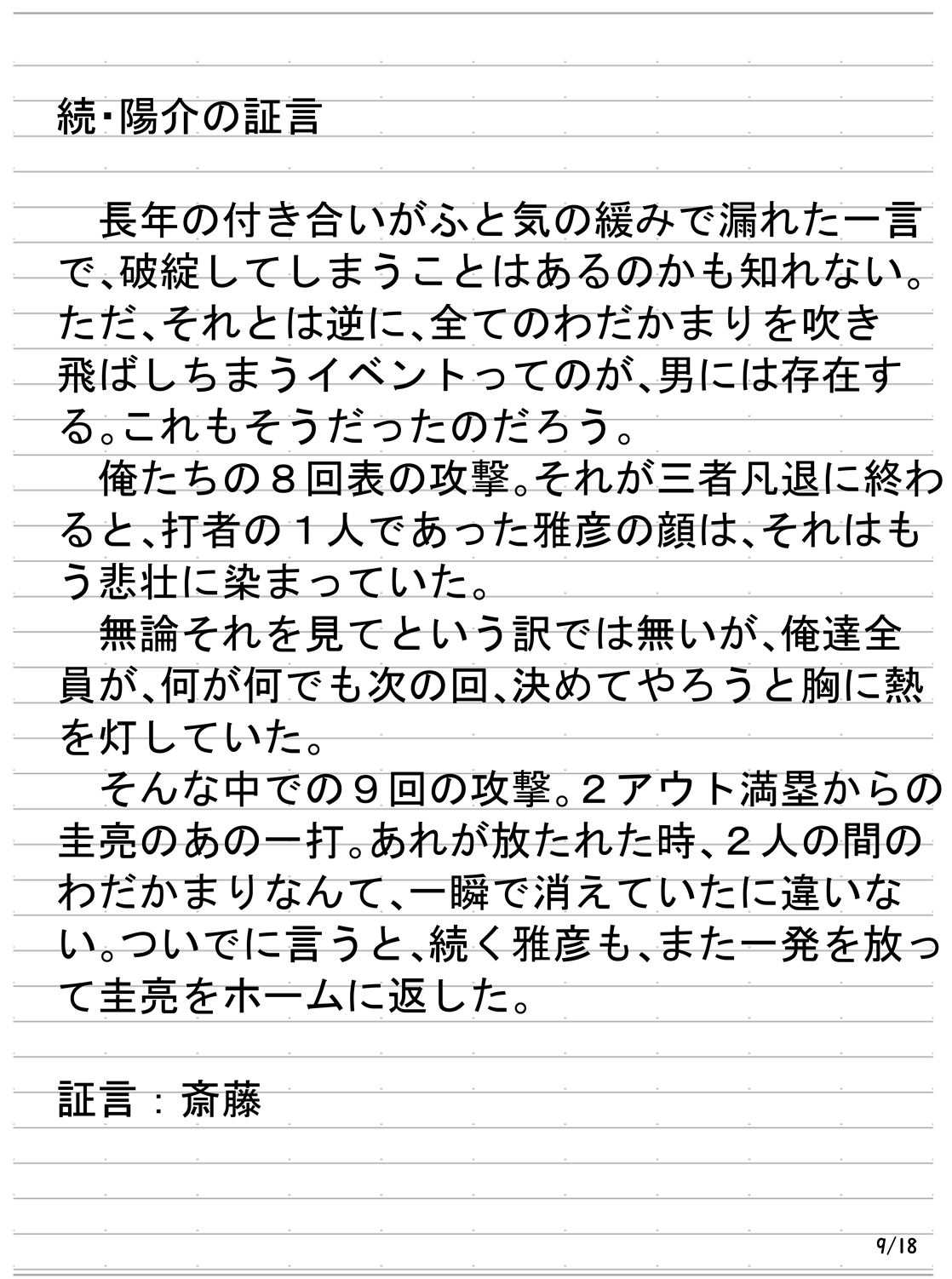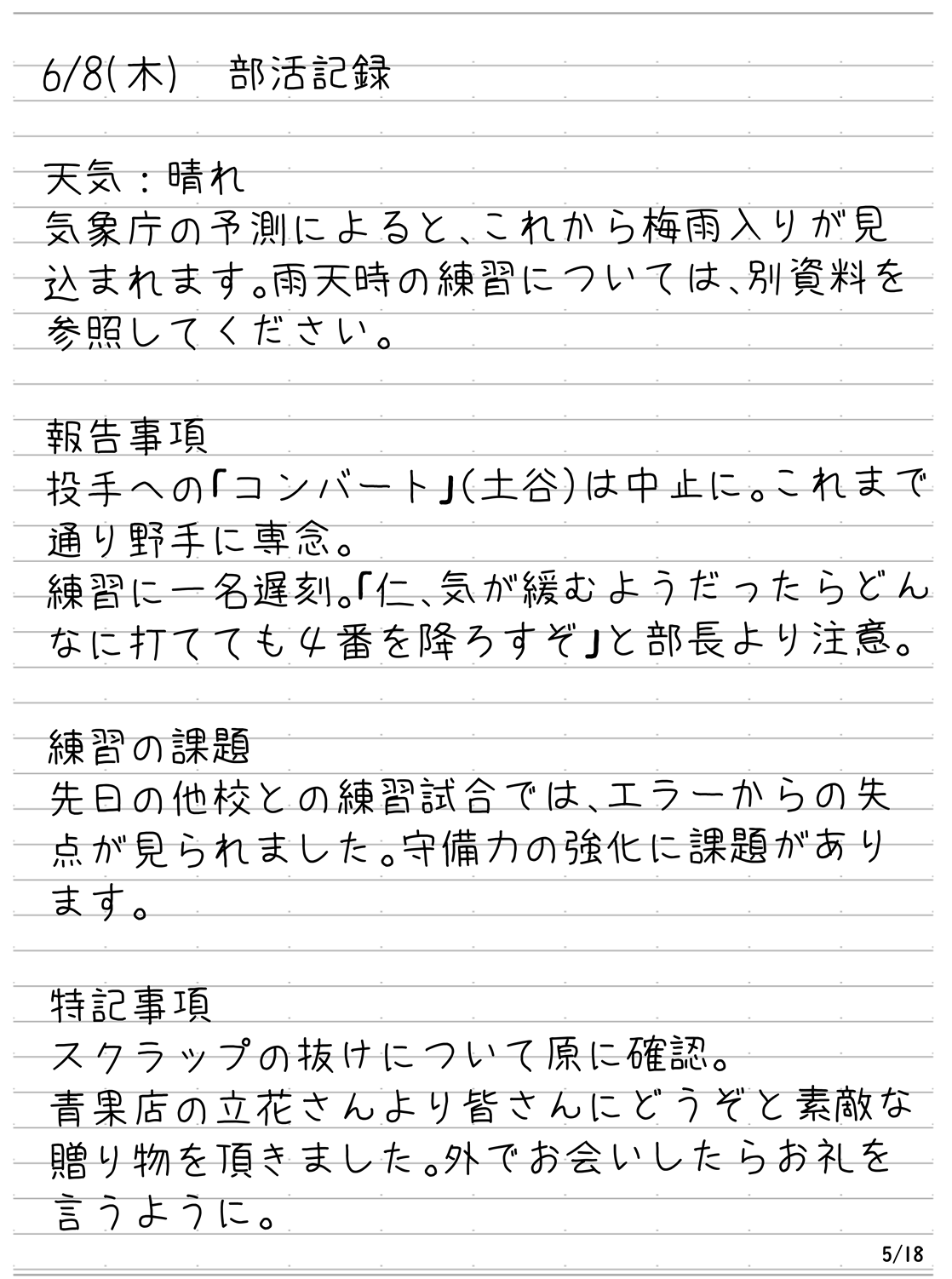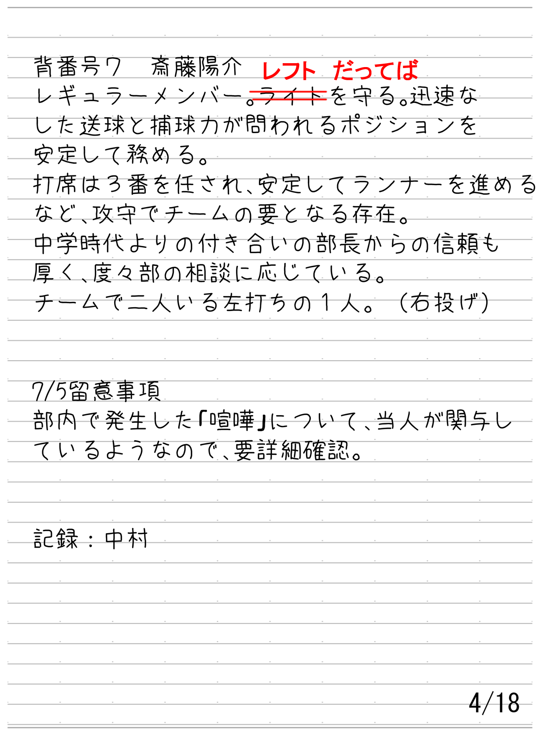 備考の列には隠しメッセージや個人的に気になったことなどをメモしているが、それらが合っている保証や何かしらの伏線になっているかどうかの保証はない。また、今回はボイスメモやボイスレコーダーを使用した進行があったので、リストの後にそれらの文字起こしを記載している。